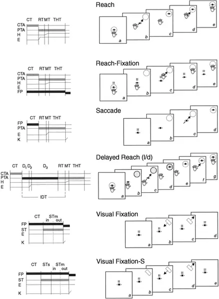 L’attività neuronale è stata registrata nella corteccia parieto-occipitale mentre scimmie eseguivano diversi compiti finalizzati a studiare le interazioni visuomotorie tra segnali retinici, oculari e legati al movimento del braccio.