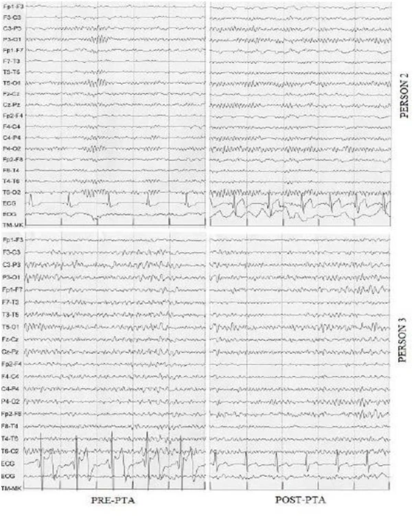 Metodi: Sette pazienti con diagnosi di CCSVI ed emicrania cronica, con o senza altri sintomi, sono stati sottoposti a angioplastica transluminale percutanea (PTA) delle vene giugulari interne. Tutti hanno eseguito risonanza magnetica venografica e/o ecocolordoppler prima della PTA, sette EEG preoperatori e cinque EEG di controllo post-PTA. L’intensità del dolore è stata valutata con una scala numerica prima e dopo l’intervento.